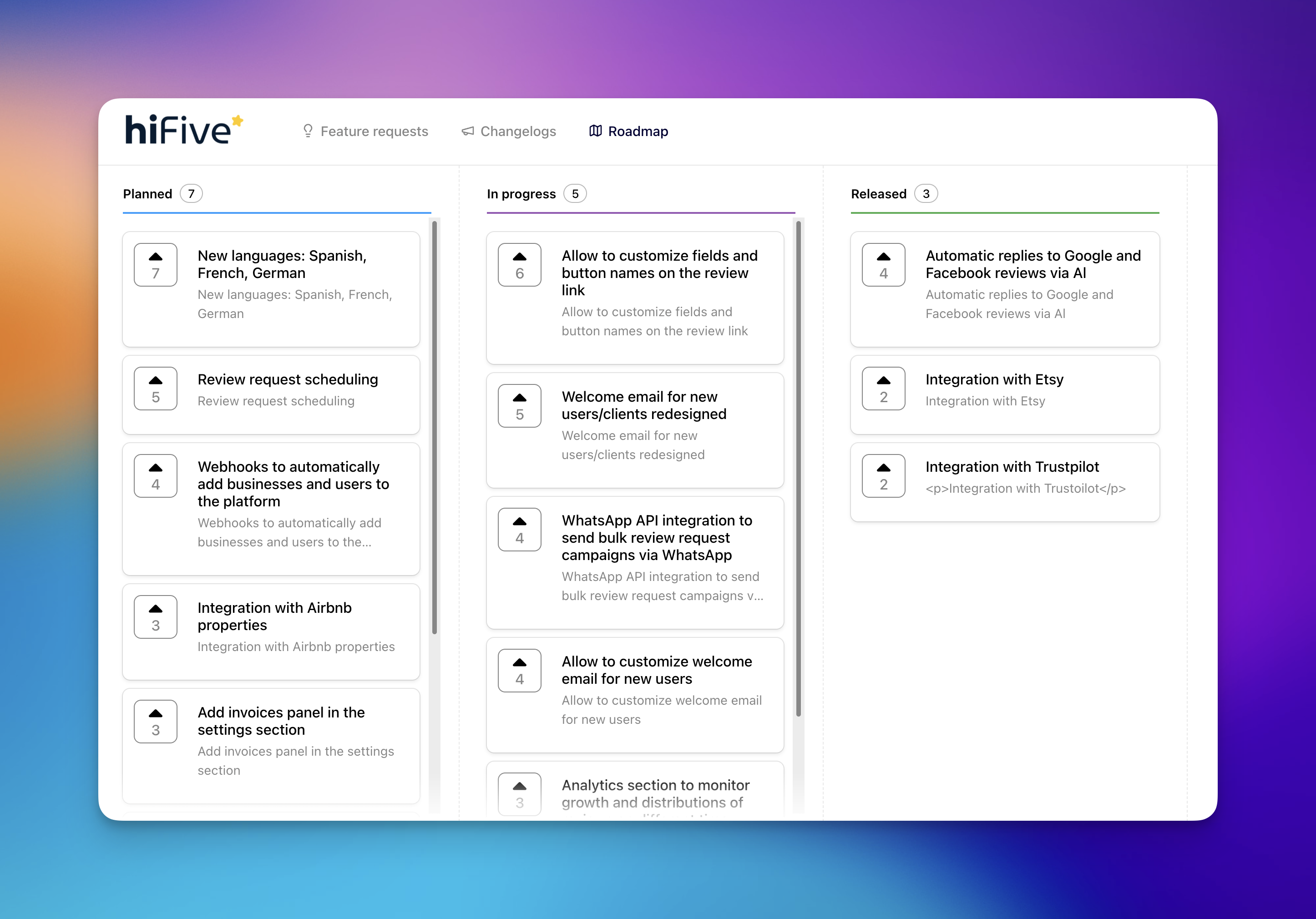 We want HiFiveStar to be the most effective tool in your marketing stack. Using the roadmap gives you a seat at the table: