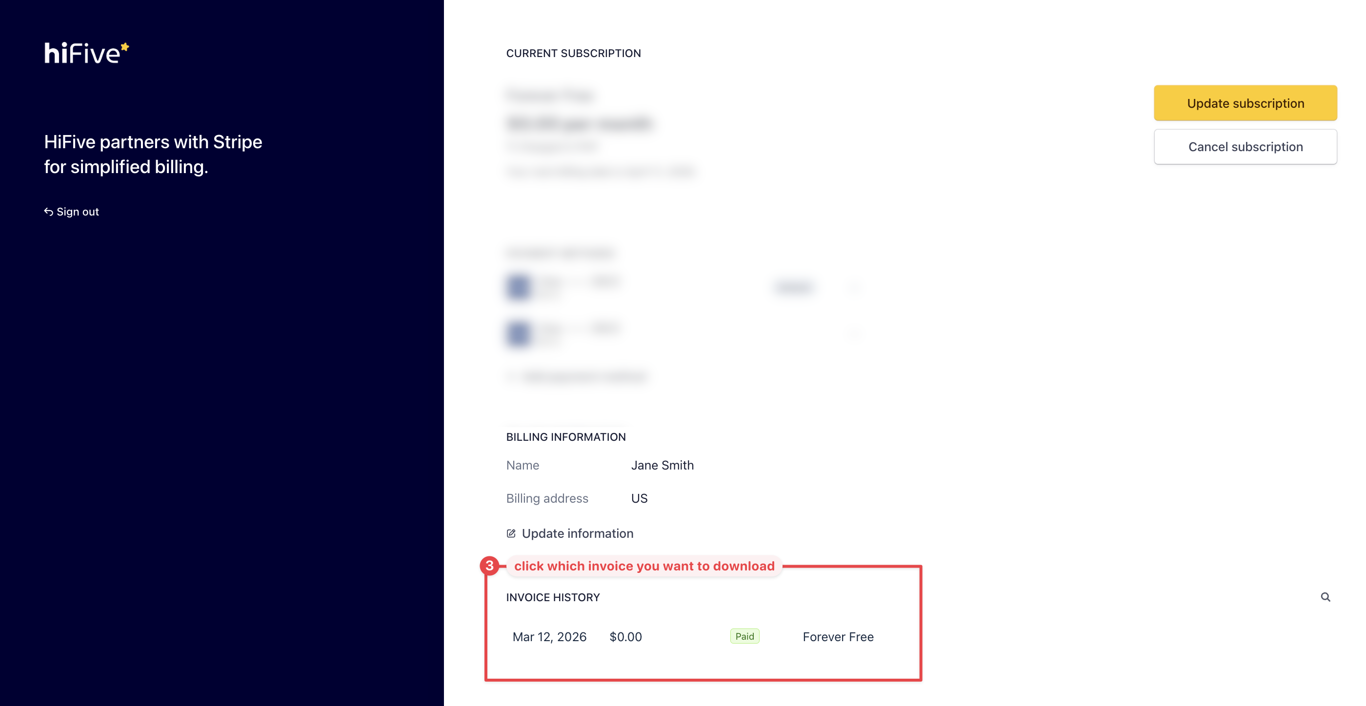 Follow these steps to access and download your billing documents:Log in to your HiFiveStar account.