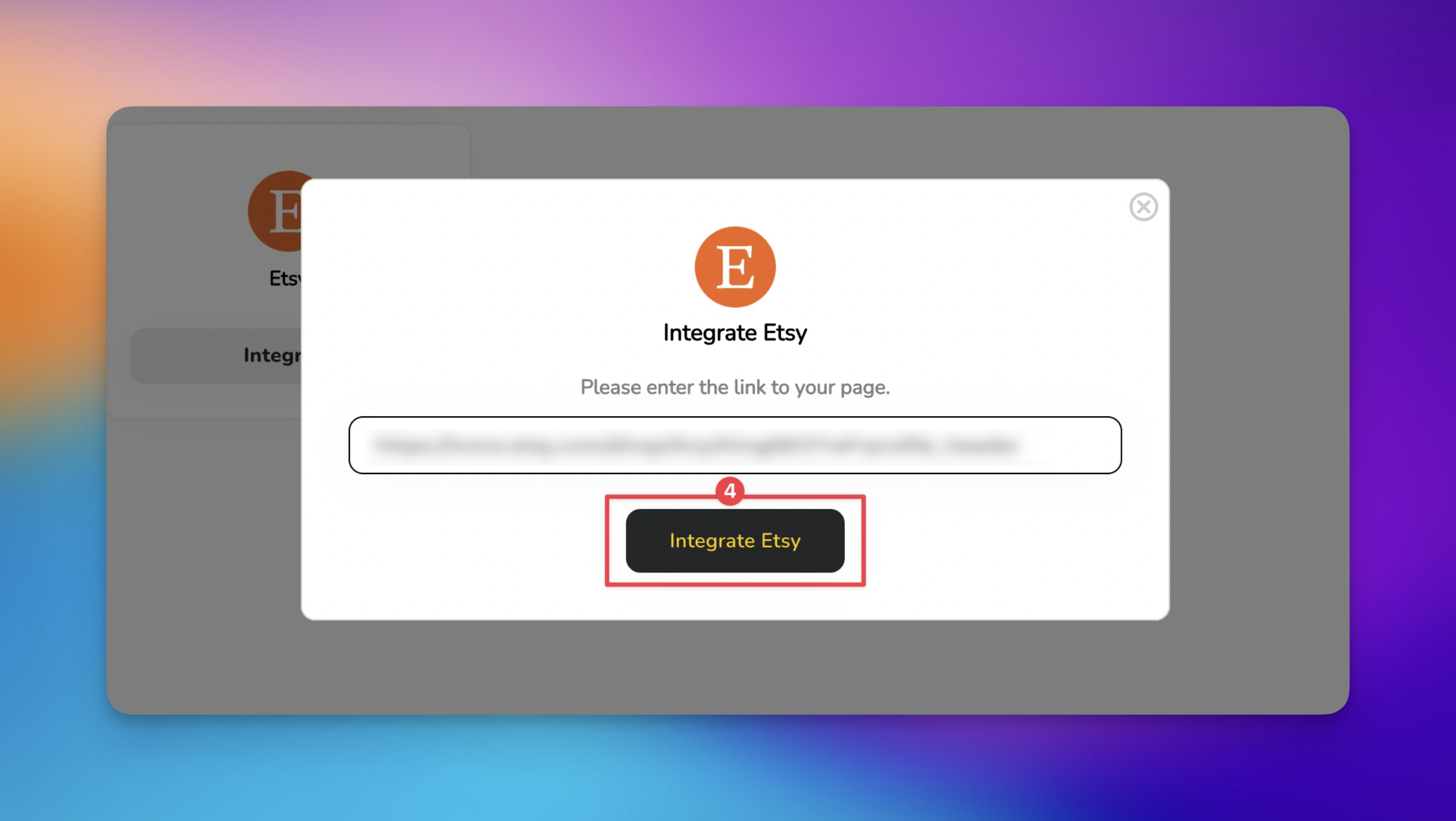 Enter Your Etsy Shop URL - Click the 'Integrate' button and paste your public Etsy shop link into the designated field.