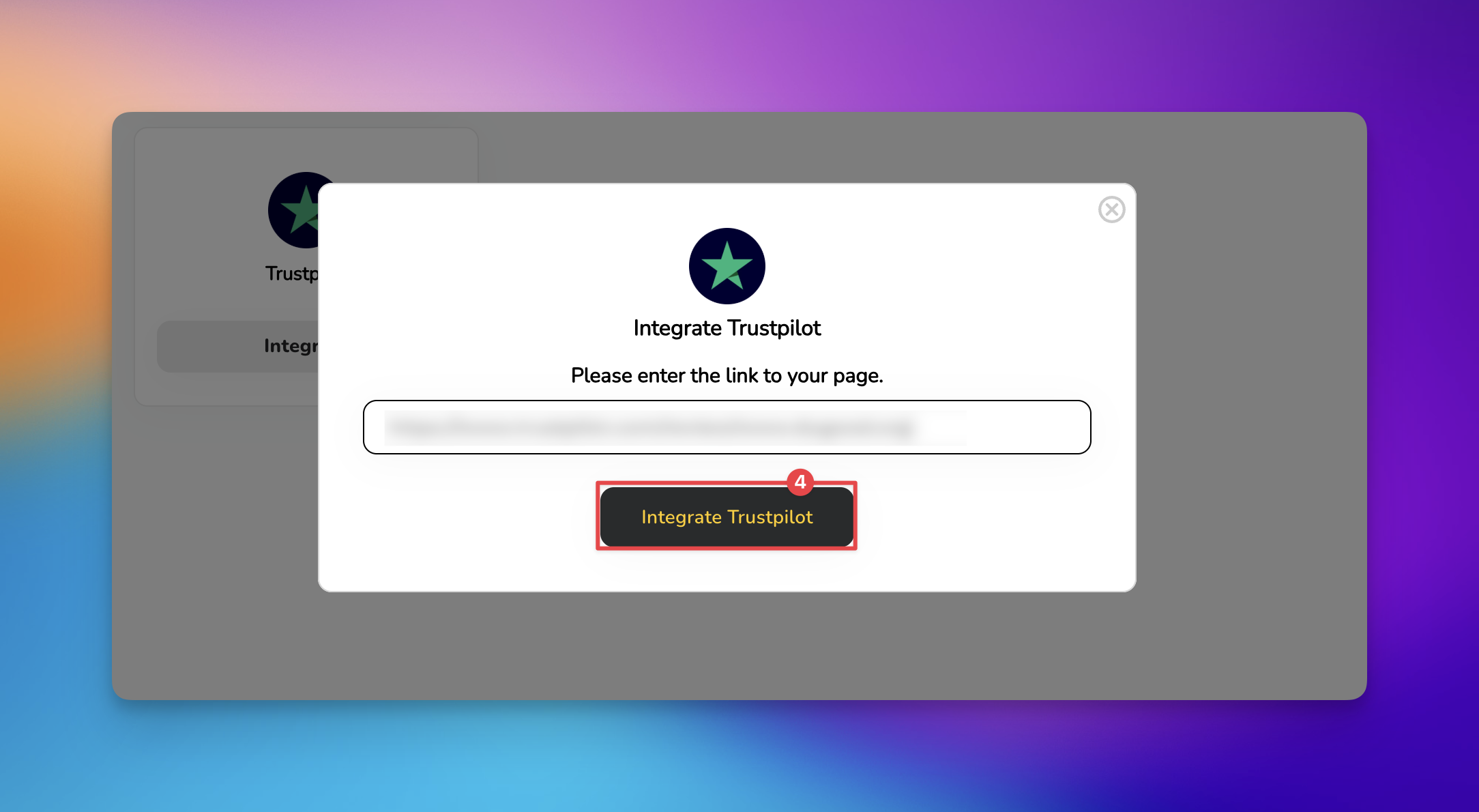 Click the 'Integrate' button next to Trustpilot. A text box will appear asking for your Trustpilot Business URL. Paste your profile link into this space.